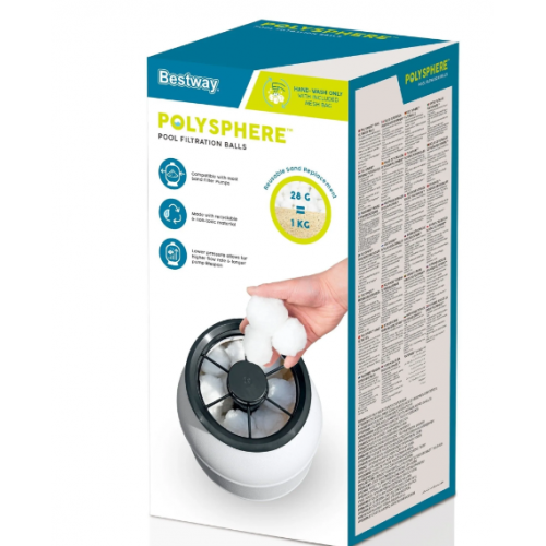 Фильтрующие шарики изготовлены из высококачественного, на 100% перерабатываемого и нетоксичного материала, который не только безопасен для окружающей среды, но и обеспечивает безопасное обслуживание бассейна. Еще одно преимущество фильтрующих шариков Bestway Polysphere 58475 заключается в том, что они поддерживают низкое давление в системе песчаного фильтра, что обеспечивает более высокую скорость потока и продлевает срок службы вашего бассейна и системы песчаного фильтра.