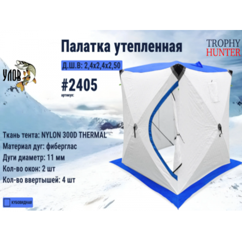 Палатка КУБ утепленная Trophy Hunter для зимней рыбалки 240*240*250 четырехместная.